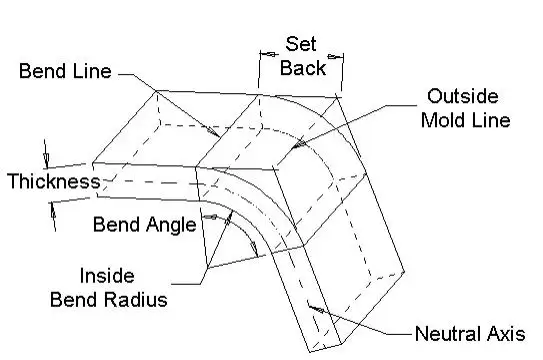 • Neutral Axis: The theoretical layer where material length does not change in the bend.