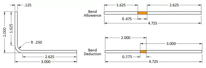 Bend Allowance = 90 × (π / 180) × (0.250 + 0.42 × 0.125) = 0.475 in