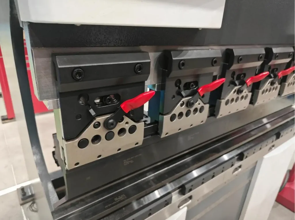 • Rapid die setup. Quick-change Amada clamp and clear datum references reduce tool change time and shrink the “first-article variability” zone. Fast, positive seating helps the first bend match the last - no extended tweaking required.