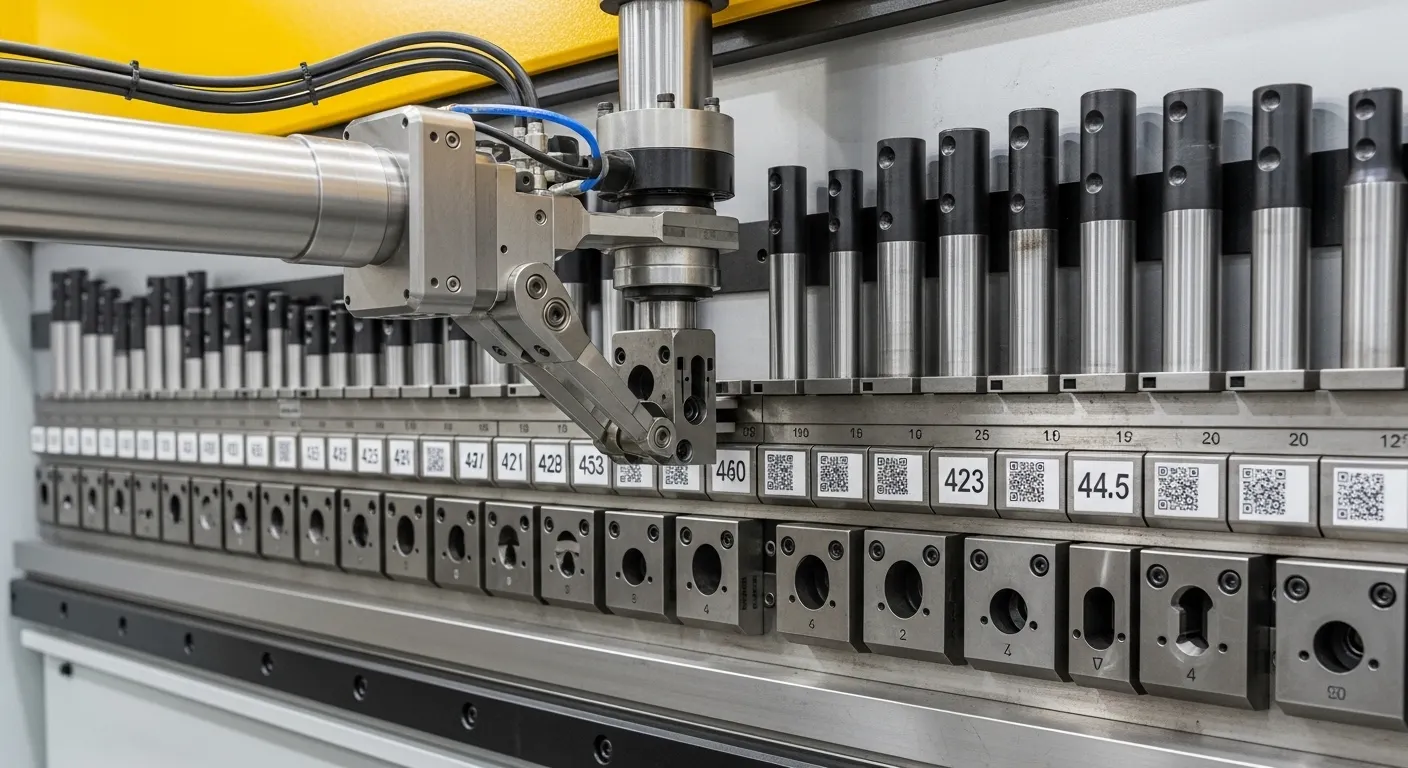 One of the biggest bottlenecks in fabrication is swapping heavy punches and dies. An ATC system uses a mechanical arm to retrieve and seat the correct tooling in seconds. This is critical for shops running small batches of various parts, as it keeps the "green light" on the machine glowing longer. For more on optimizing your setup, see our guide on Press Brake Tooling and Accessories: What to Buy First.